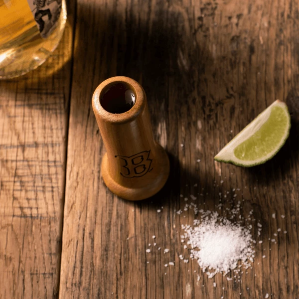 - Bat handle shot glass holds a one-ounce (1oz) shot
