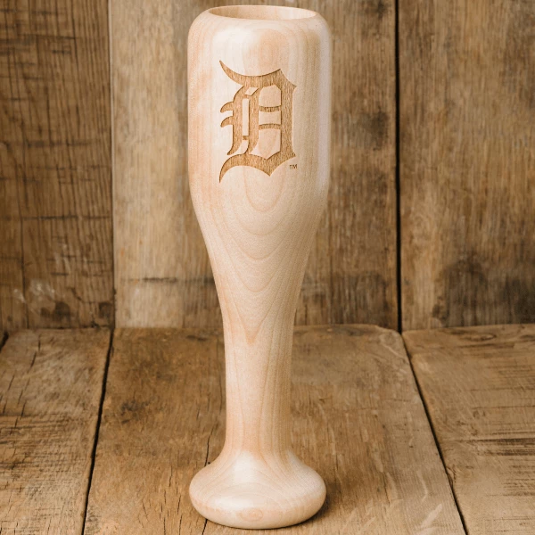 The Detroit Tigers “D” Wined Up® – a mini baseball bat wine glass. This 100% birch wood mini baseball bat is perfect to sip from on the patio, sitting poolside, while watching the “big game”, or even tailgating.