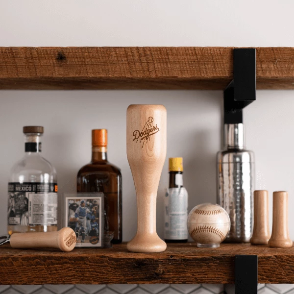The Los Angeles Dodgers Wined Up® – a mini baseball bat wine glass. This 100% birch wood mini baseball bat is perfect to sip from on the patio, sitting poolside, while watching the “big game”, or even tailgating.