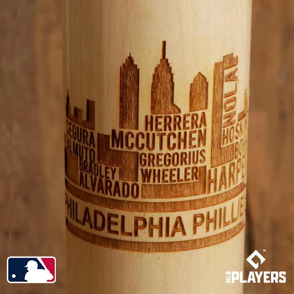 MLB/MLBPA Licensed Dugout Mugs® with the names of your favorite players making up the Philadelphia Phillies Skyline Series Dugout Mug®