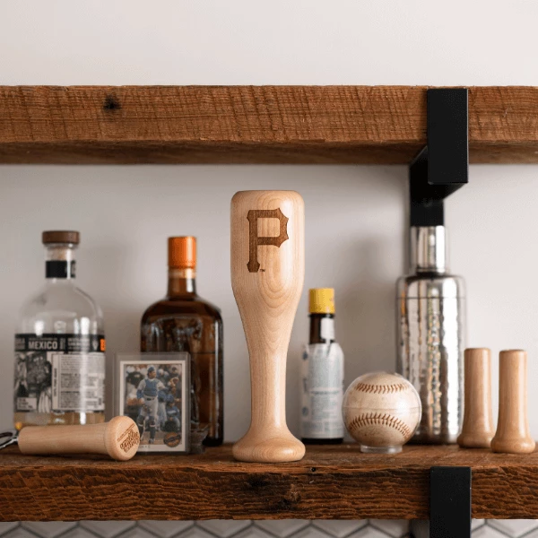 The Pittsburgh Pirates Wined Up- a mini baseball bat wine glass. This 100% birch wood mini baseball bat is perfect to sip from on the patio, sitting poolside, while watching the “big game”, or even tailgating.