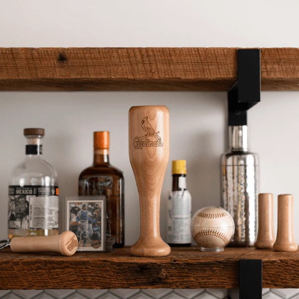 The St. Louis Cardinals Wined UpĀ® – a mini baseball bat wine glass. This 100% birch wood mini baseball bat is perfect to sip from on the patio, sitting poolside, while watching the “big game”, or even tailgating.