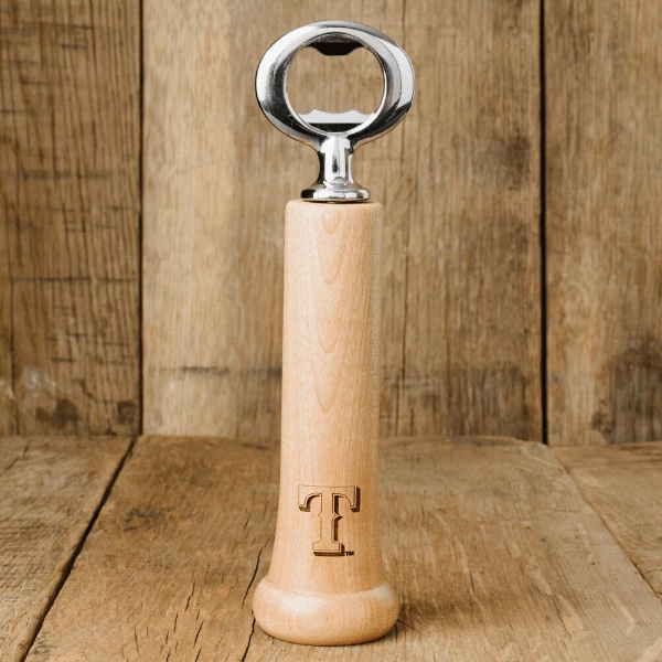 Dugout Mugs® proudly presents the Texas Rangers “T” Baseball Bat Handle Bottle Opener – “The Season Opener” it’s another unique, fun, and quality concept. The ultimate gift idea for the baseball fan in your life!